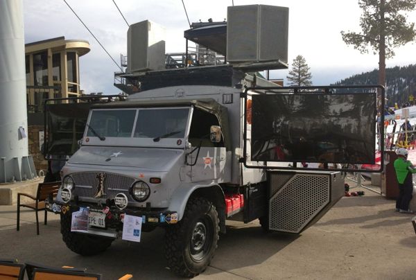 The Space Coboys Unimog sound car made it’s annual pilgrimage to Squaw Valley for Snowfest this weekend. The sound car first appeared in the Black Rock Desert for the Burning Man Festival in 2001 and has been rocking the left coast ever since. Perfect weather on Friday and Saturday made for a great time to feast on San Francisco based electronica served up from the “Mog”.
