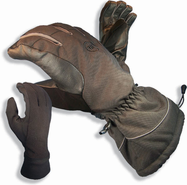 Three gloves in one: you can wear the black neoprene liners alone on spring days, the liners with the fleece-lined shells on arctic days, and the insulated shell without the liner for the in-betweens. The shell has reinforced leather palms to reduce pole-grip wear and a soft leather nose-wipe on the outside of the thumb. $50, manzella.com